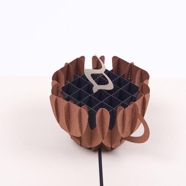 Take pleasure in this wonderfully imagined pop-up of a cup of coffee, and take inspiration from the design and intricacy of the piece. This card is fantastic for all true coffee lovers.